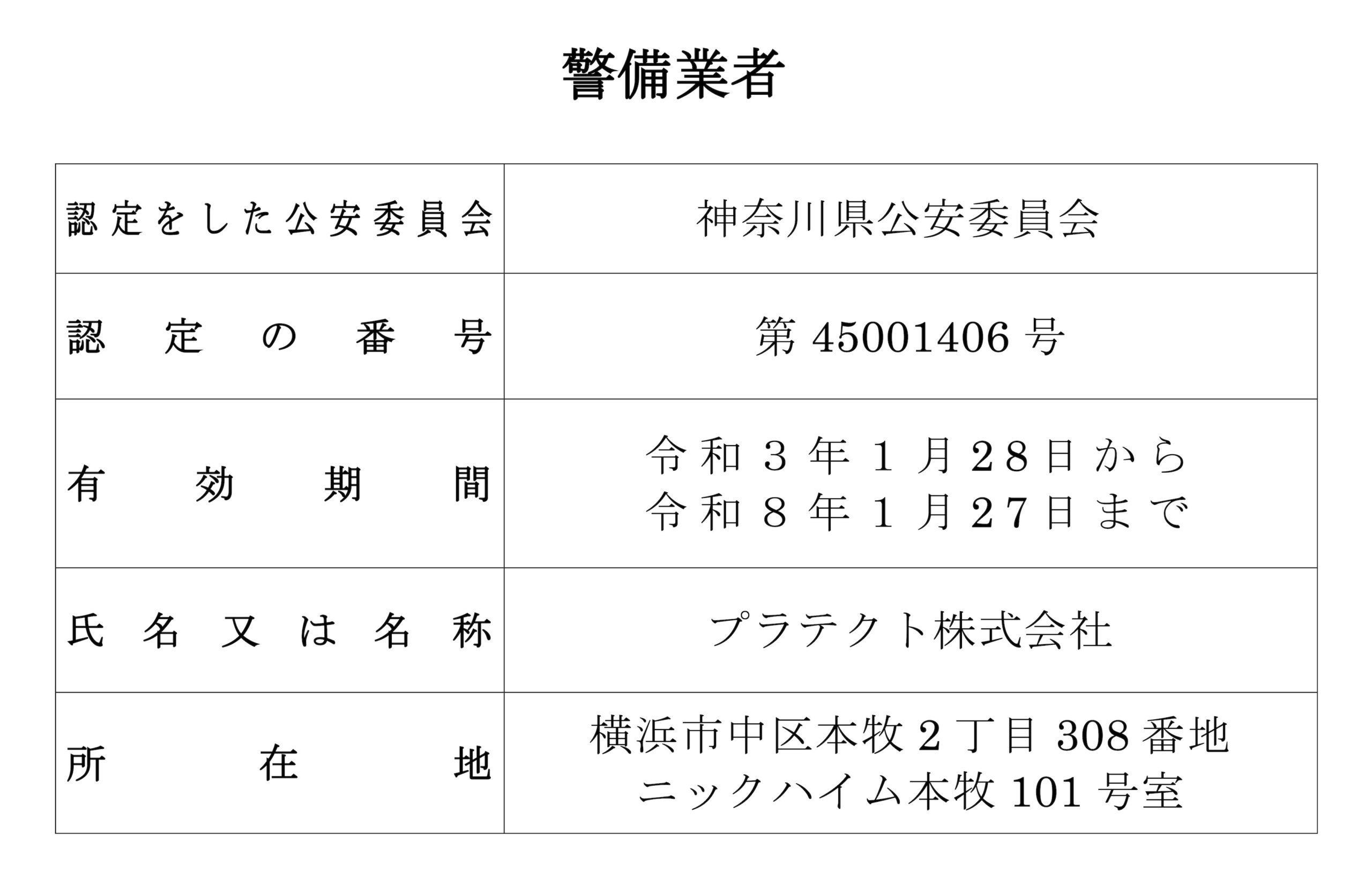 | 認定番号 | 神奈川県公安委員会 第45001406号 |